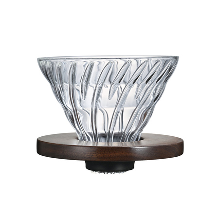 Superlækker tragt i oliven olie træ og glas. Bryg din kaffe direkte ned i en kop eller ned i en Hario glaskande. 2 kopstragt.